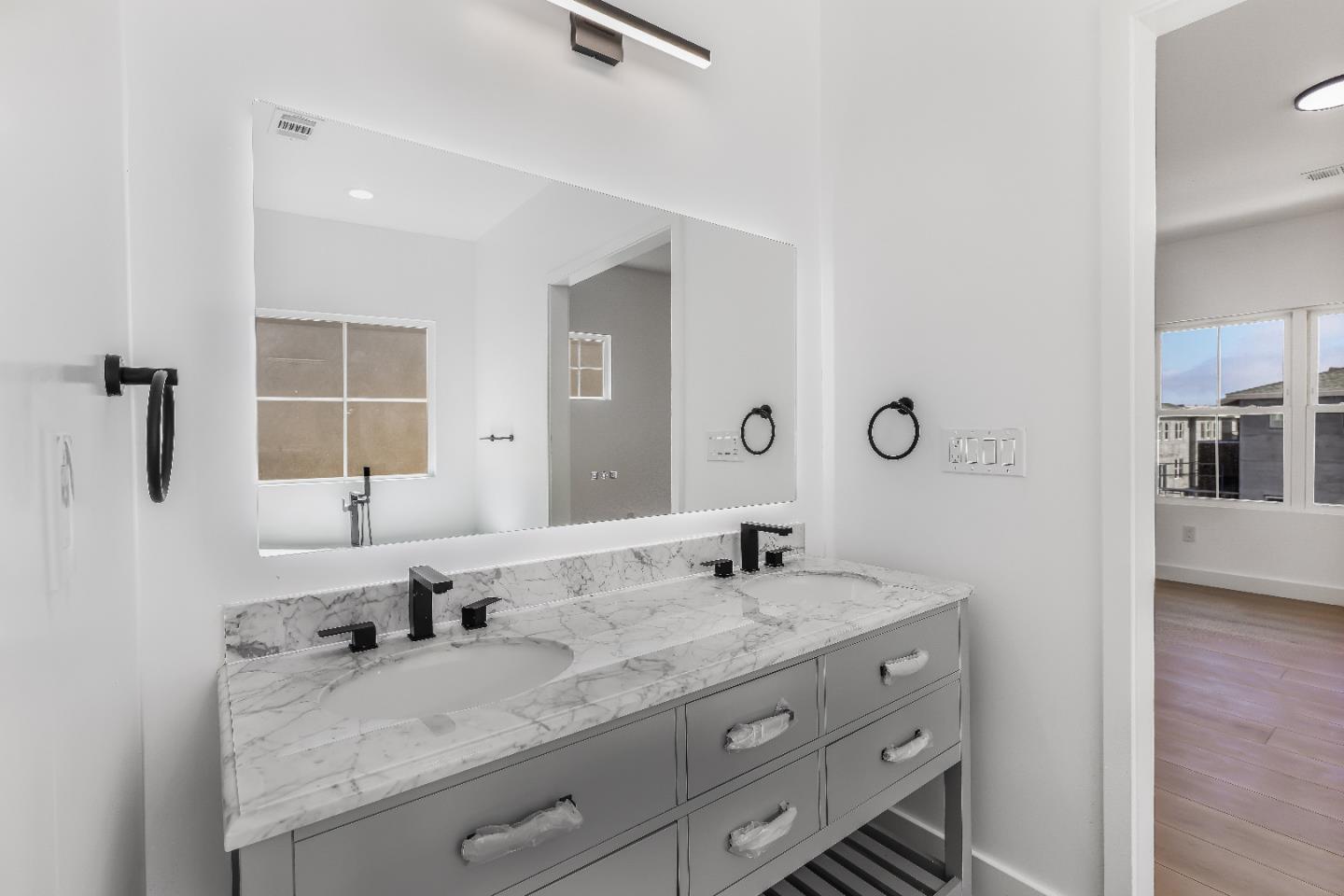 Welcome to Pacific Sunshine, a sought-after new home community where natural splendor meets contemporary comfort. This sophisticated three-level is set beside the picturesque Wetlands of Watsonville, offering a serene backdrop rich in outdoor recreation. Step into a thoughtfully crafted entryway that sets a warm, elegant tone. The ground floor includes a private ensuite bedroomideal for guests or multigenerational livinga spacious two-car garage with ample storage leads topeaceful rear yard, perfect for relaxation. The main level features a bright, open-concept design for daily ease and stylish entertaining. A gourmet kitchen boasts upgraded appliances, a generous island, and sleek cabinetry. The dining area and great room flow to a front balcony, promoting seamless indoor-outdoor living. A modern powder room and versatile alcove enhance the space.Upstairs, retreat to the refined primary suite with a walk-in closet and spa-inspired bath featuring dual vanities and a freestanding shower. A second ensuite bedroom near the laundry area ensures privacy. Smart upgrades include two electric water heaters for efficiency and CAT-5 wiring. Enjoy close proximity to downtown, shopping, scenic trails, and a tranquil bird-watching lookoutperfect for a lifestyle in nature and wellness.